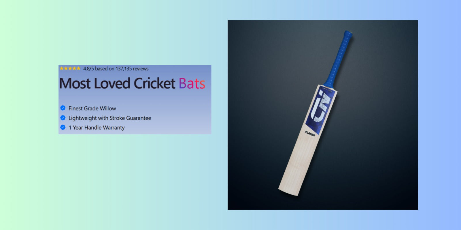 The bats are not ready-made, we manufacture a new bat for every customer as per their requirements.